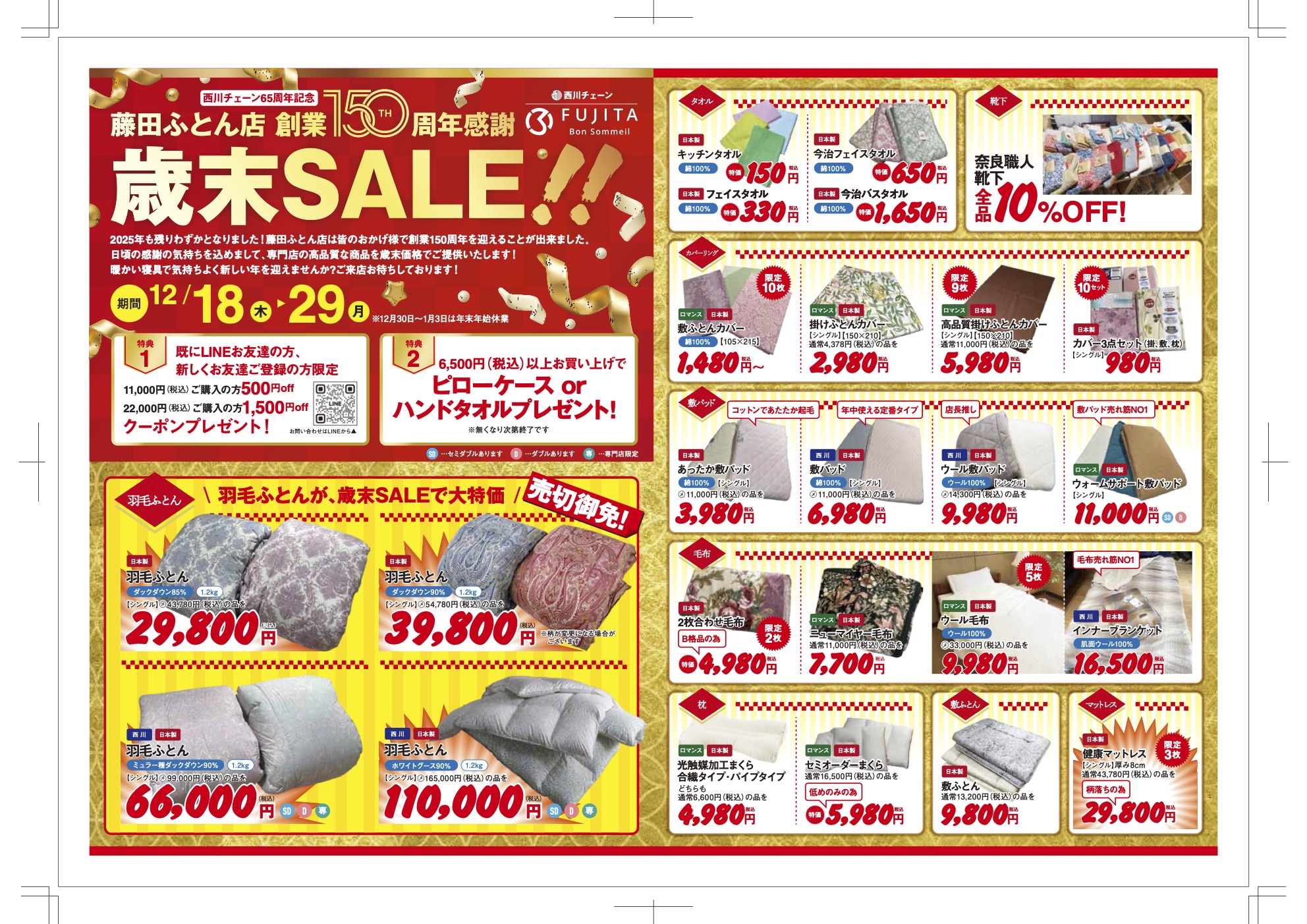 創業150周年記念 歳末SALE開催!!【12月18日〜29日】